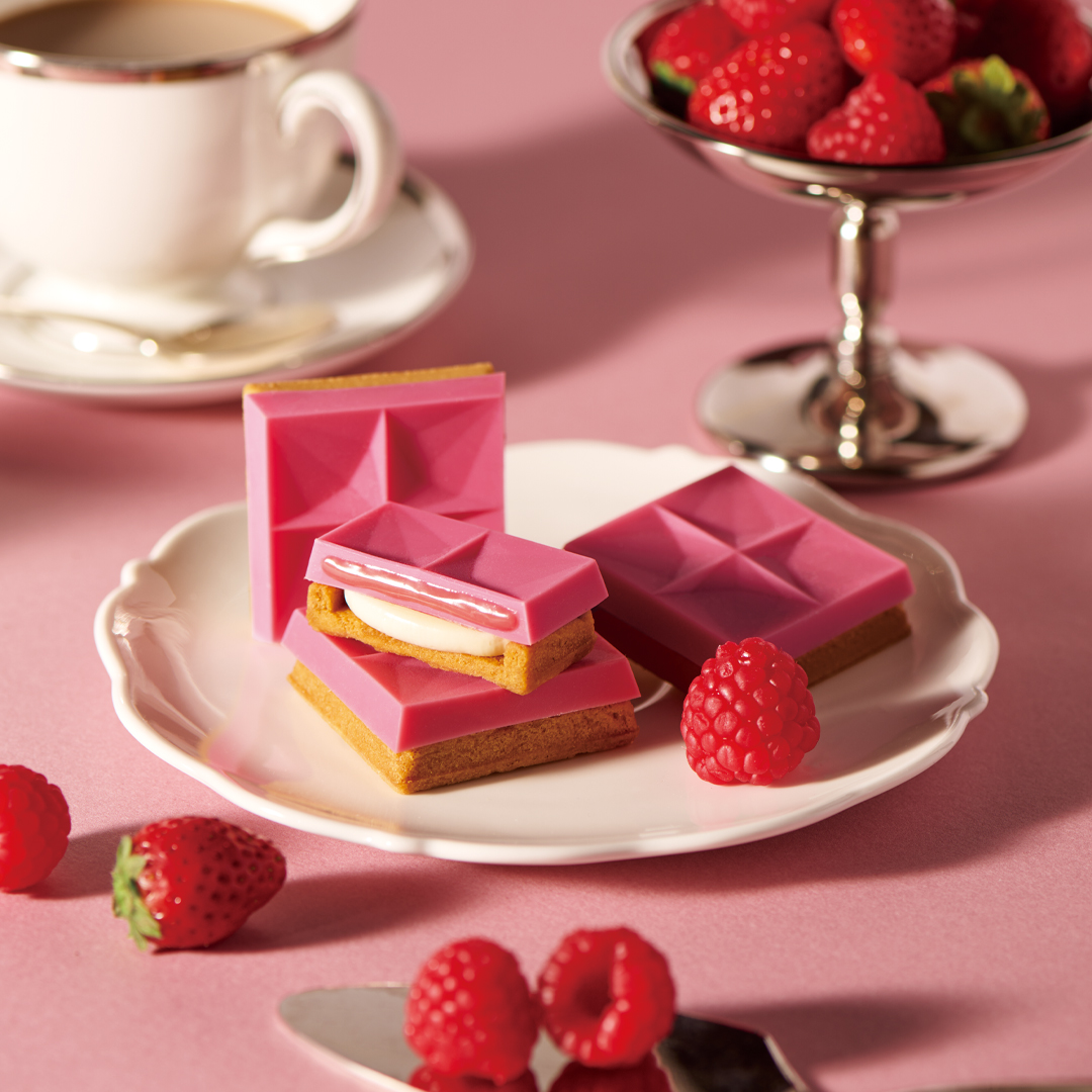 クッキーをボックス型にし、挟んだときに柔らかいフィリングがはみ出さないように閉じ込めました。クッキーの表面には筋を入れ、食べやすく割れるように設計しています。