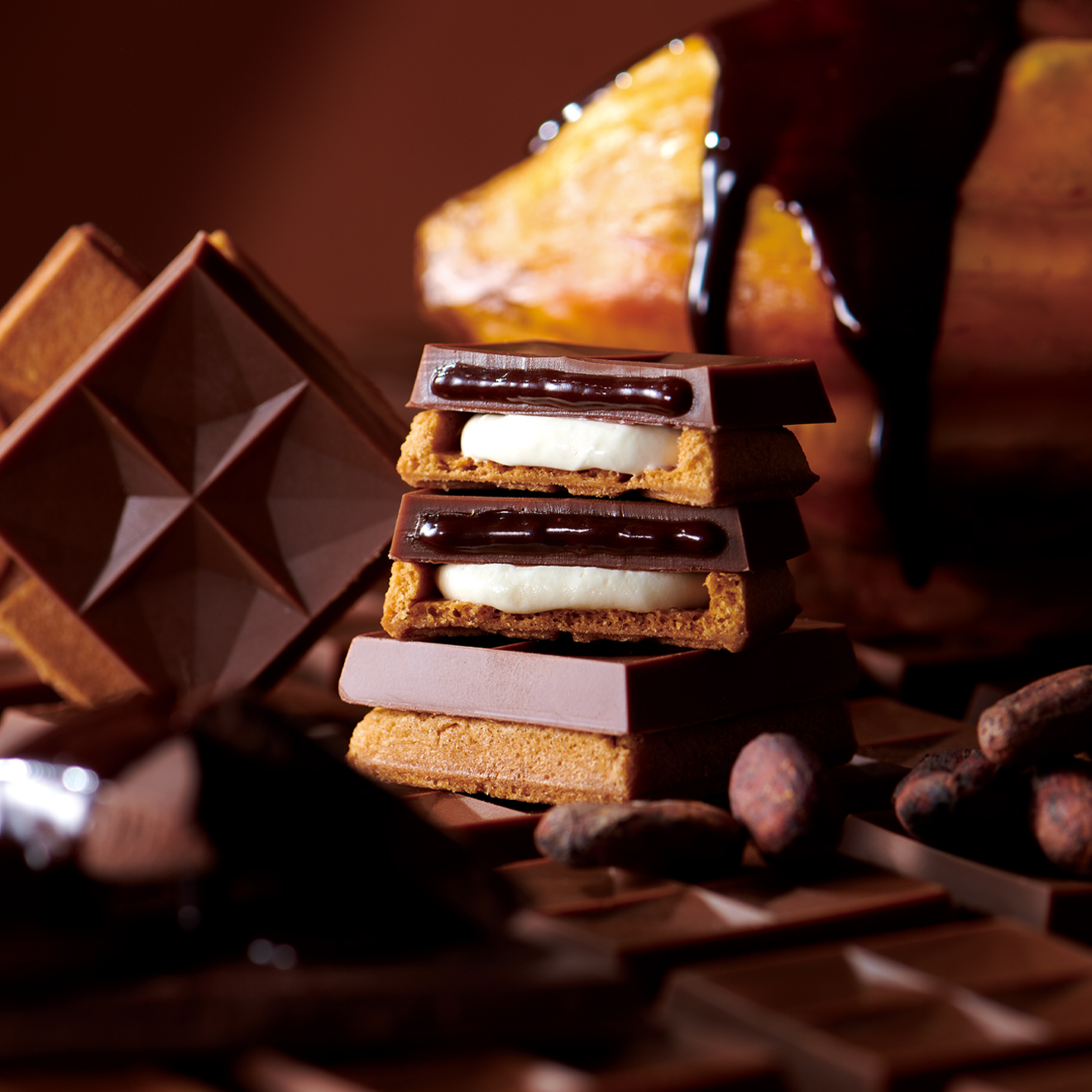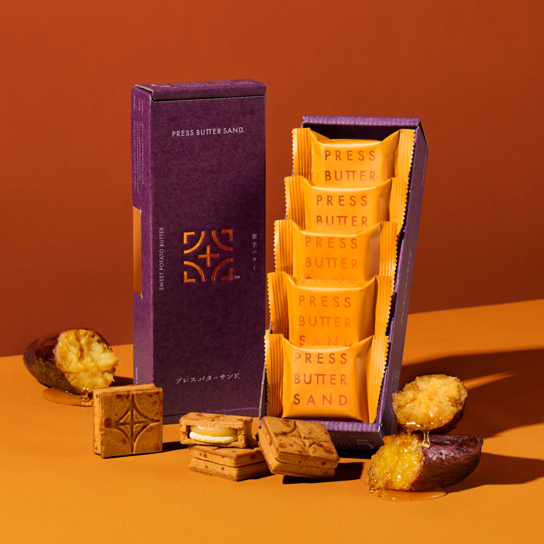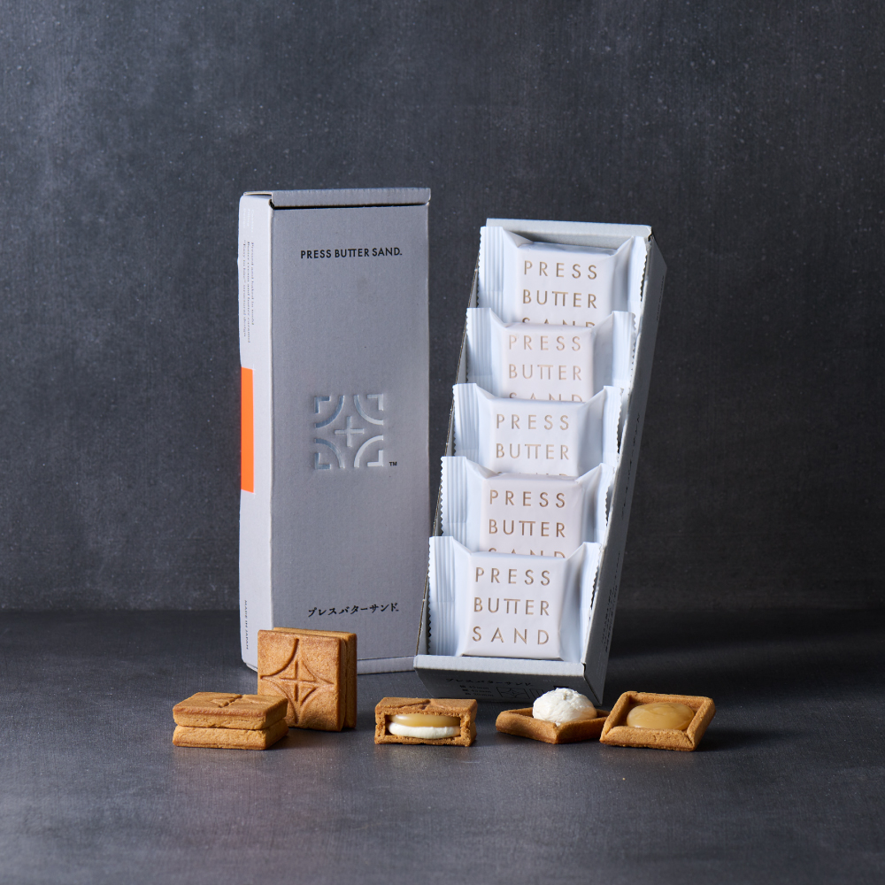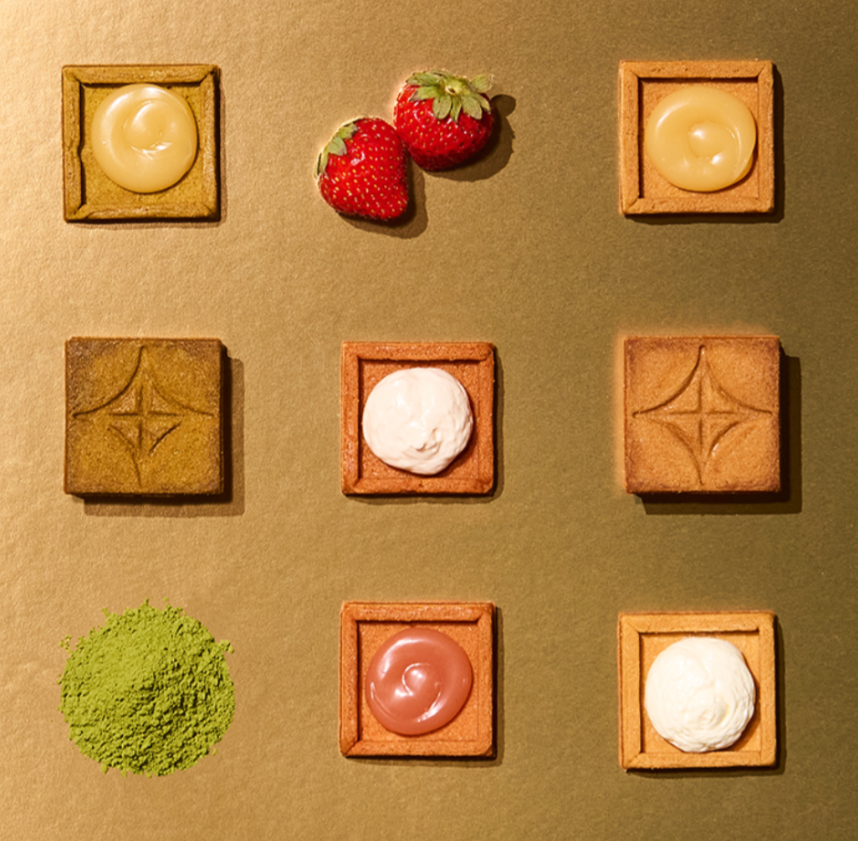 クッキーをボックス型にし、挟んだときに柔らかいフィリングがはみ出さないように閉じ込めました。クッキーの表面には筋を入れ、食べやすく割れるように設計しています。